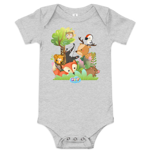 UitverkochtBaby Romper met Korte Mouw - Bosdieren - Grijs