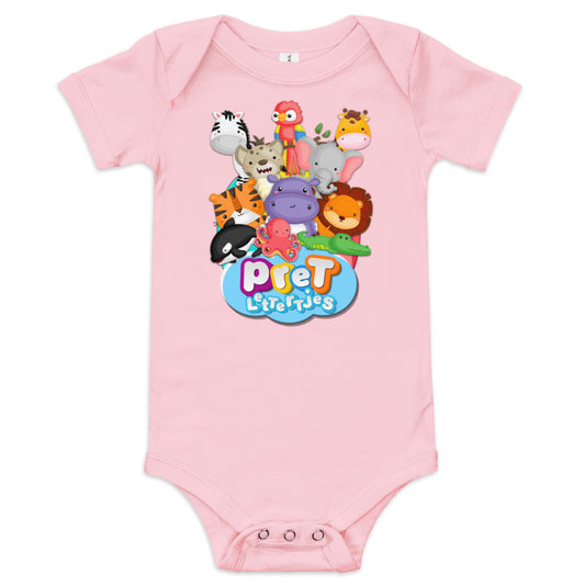 UitverkochtBaby romper met korte mouw - dierenpret - roze