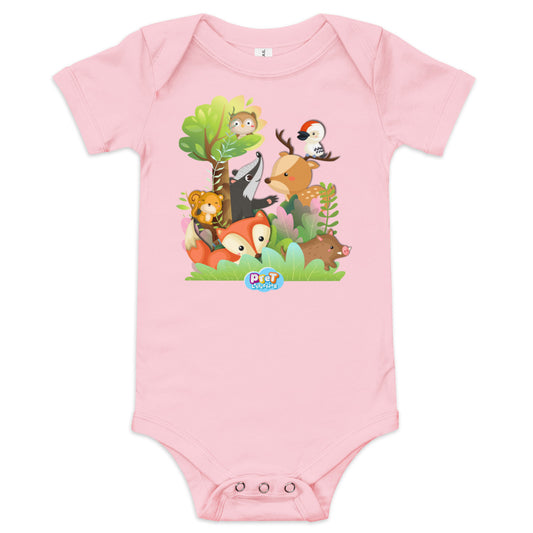 UitverkochtBaby Romper met Korte Mouw - Bosdieren - Roze