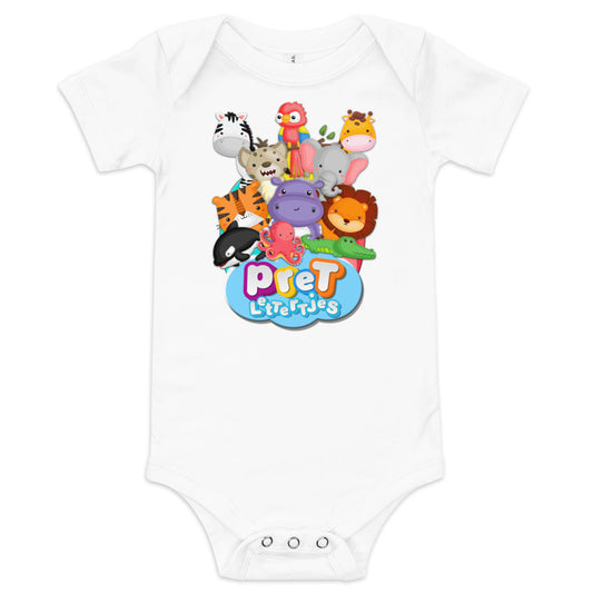 UitverkochtBaby romper met korte mouw - dierenpret - wit