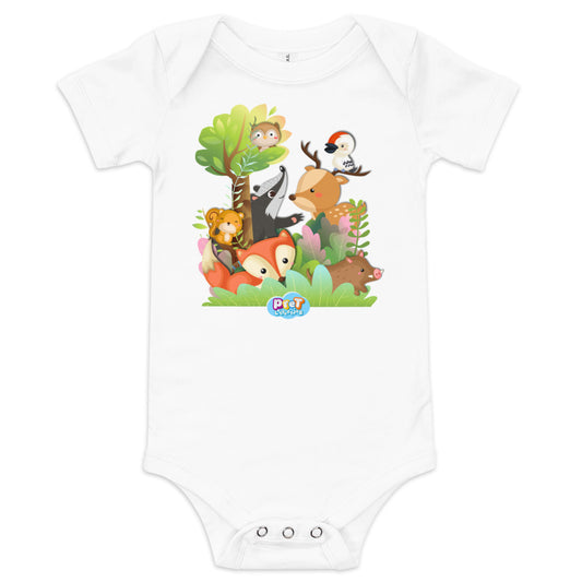 UitverkochtBaby Romper met Korte Mouw - Bosdieren - Wit