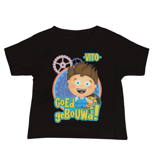 Baby t-shirt met korte mouwen - Pretlettertjes Vito's Voertuigen Print - kleur Zwart